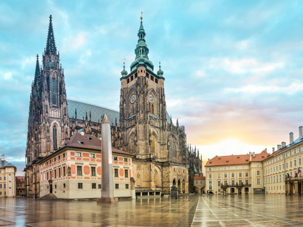 Commencez votre journée par une immersion historique et culturelle avec la visite du Château de Prague, le plus grand château ancien du monde. Découvrez les trésors architecturaux de ce site emblématique, inscrit au patrimoine mondial de l’UNESCO, qui domine la ville avec majesté.