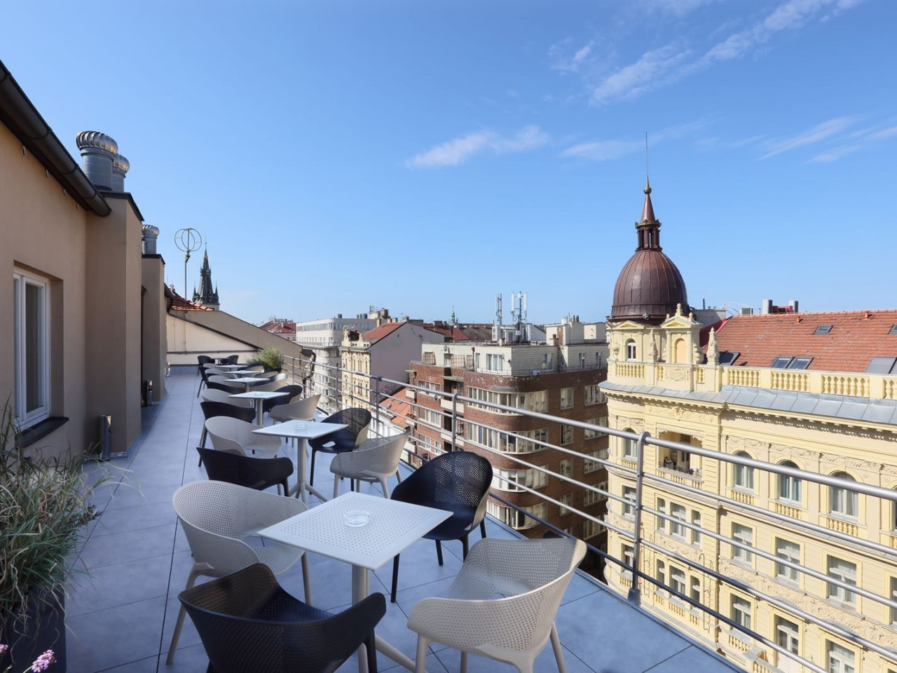 La grande terrasse sur le toit offre une vue imprenable sur Prague ainsi qu’un espace non-fumeur.